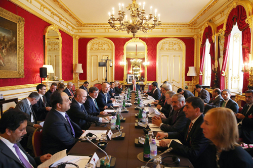 Cuộc gặp cấp ngoại trưởng của 11 quốc gia với thủ lĩnh Liên minh đối lập Syria hôm 26/10 tại London. Ảnh: AFP/TTXVN