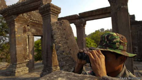 Lính Campuchia canh gác ngôi đền cổ 900 năm tuổi Preah Vihear.