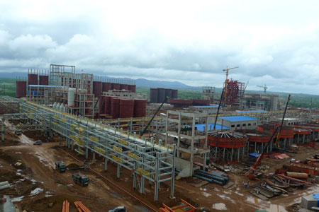 Công trường xây dựng nhà máy bô xít Tân Rai. Ảnh: T.P