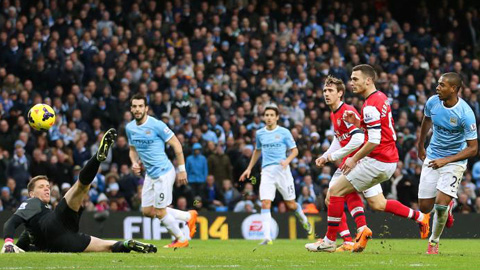 Tuy nhiên cũng phải nhờ đến một màn xoay sở luẩn quẩn rồi mất bóng của Yaya Toure, Pháo thủ mới có một bàn gỡ nhờ đường chuyền nhạy cảm của Mesut Oezil và cú dứt điểm mềm không kém của Theo Walcott (31’).