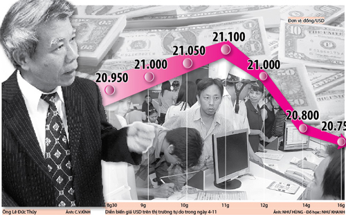 Nhận định nguyên nhân khiến tỉ giá USD tăng vọt, ông Thúy thừa nhận chính cách điều hành, giải trình “méo mó” đã làm người dân mất lòng tin. “Chỉ trong 15 ngày đầu tháng 10-2010, người dân đã rút 45.000 tỉ đồng, tương đương 2 tỉ USD. Nhiều khả năng số tiền này được đem đi mua USD, vàng khiến tăng căng thẳng” - ông Thúy nói.