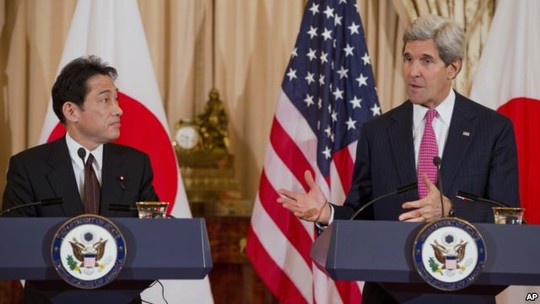 John Kerry đã hội đàm với Ngoại trưởng Nhật Bản Fumio Kishida tại Washington-Mỹ, tái khẳng định Hiệp ước an ninh Mỹ - Nhật ký năm 1960. Mỹ hứa sẽ bảo vệ đồng minh Nhật Bản và sẵn sàng giúp đỡ ngay cả trong vấn đề căng thẳng leo thang do tranh chấp quần đảo Senkaku/Điếu Ngư với Trung Quốc trên biển Hoa Đông.