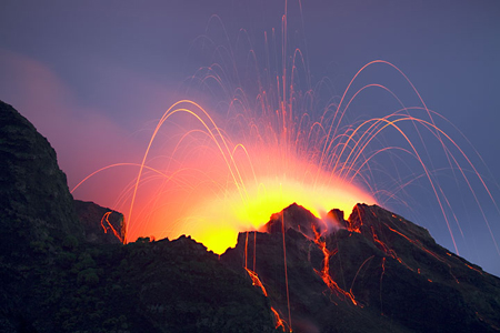 Dung nham hiếm khi trào ra từ miệng núi lửa Stromboli. Năm 2002 nó phun dung nham lần đầu tiên sau 17 năm. Hiện tượng đó gây ra một trận sóng thần nhỏ và tàn phá ngôi làng Stromboli ở phía bắc đảo.