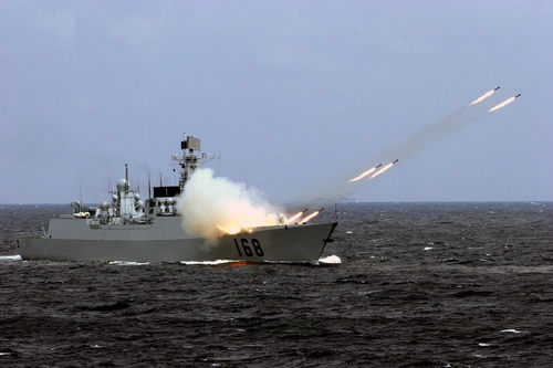 Tàu chiến hải quân Trung Quốc tập trận - Ảnh: Reuters