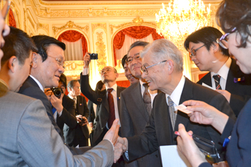 Hơn 120 người bạn Nhật Bản tham dự cuộc gặp thân mật đã chờ nhau, từng người một, để trao tận tay Chủ tịch nước Việt Nam tấm danh thiếp của mình. Họ không nén được cảm xúc khi kể về những kỷ niệm về Việt Nam cũng như ấn tượng với cảnh sắc, con người và cả những món ăn của Việt Nam. Họ có rất nhiều mong muốn, nhưng đều có một điểm chung: Đó là nguyện làm hết sức để xây dựng mối quan hệ tốt đẹp giữa Việt Nam và Nhật Bản.