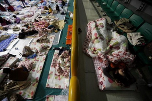 Hiện có hàng trăm người trú ngụ tại phòng tập thể dục nói trên, khiến nó trông giống như một trại tị nạn. Một số người tỏ ra kiệt sức và đã bật khóc vì quá căng thẳng, theo AFP.