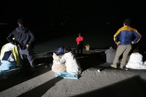 Nhiều thân nhân ngồi cả ra ngoài bến cảng để chờ tin người thân bất chấp tiết trời giá rét vì quá lo lắng
