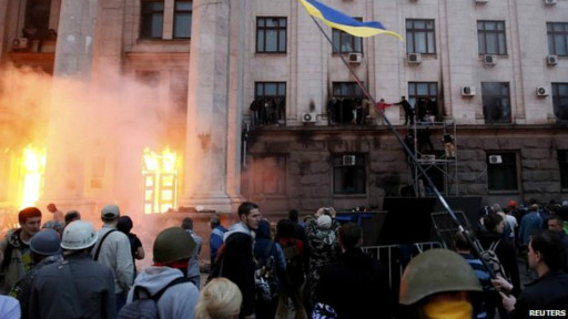 Hãng tin Anh BBCNews và Reutres ngày 2-5 thì cho biết: “Vụ cháy xảy ra tại Tòa nhà Công đoàn ở Odessa không biết bắt đầu do đâu. Nhiều người ly khai được cho là đã trấn thủ bên trong tòa nhà và cả hai bên đã ném bom xăng vào nhau”…