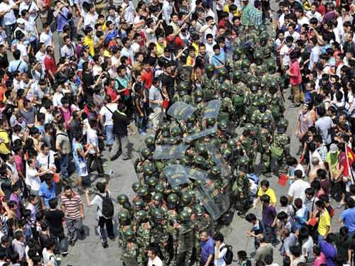 Dân Trung Quốc vây cảnh sát trong một cuộc biểu tình chống Nhật