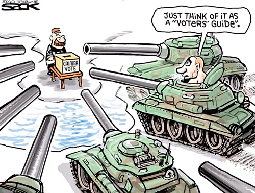 Biếm họa về cuộc bỏ phiếu ly khai của Crimea.