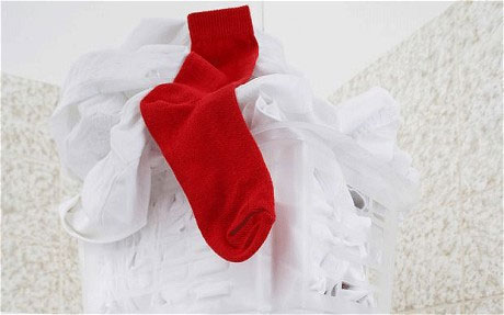 Một chiếc tất đỏ lẫn trong đồ trắng cũng có thể là ác mộng của bất cứ bà nội trợ nào. Ảnh: Alamy.