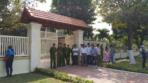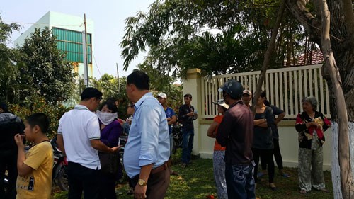 Cán bộ, người dân Đà Nẵng tập trung trước cổng nhà riêng của ông Nguyễn Bá Thanh - Ảnh: Diệu Hiền