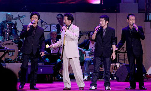 Danh ca Chế Linh và 3 người con trai cùng đứng chung sân khấu trong một đêm nhạc.