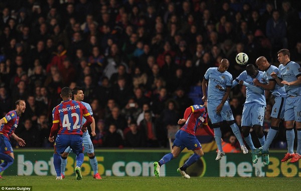 Nhưng một bất ngờ đã xảy ra: Khi trái bóng bay về phía hàng rào, nó tìm đến trúng vị trí của Yaya Toure. Thật kinh ngạc khi thay vì giơ đầu phá bóng, Toure lại rụt cổ né và hệ quả là bóng vòng qua chính vị trí Toure bỏ lại, bay thẳng vào lưới Joe Hart, ấn định chiến thắng 2-1 cho Crystal Palace.