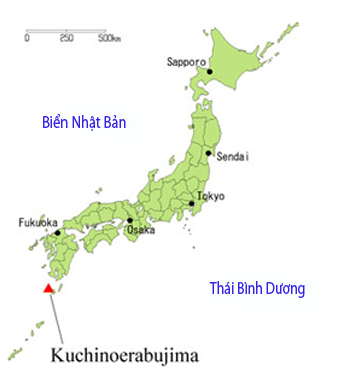 Vị trí đảo Kuchinoerabu (tam giác màu đỏ). Đồ họa: flutrackers