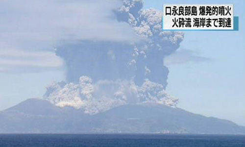 AP đưa tin núi lửa Shindake, nằm trên hòn đảo nhỏ Kuchinoerabu, phun trào vào khoảng 10h sáng nay (giờ địa phương), tỏa những cuộn khói đen ngùn ngụt lên bầu trời.