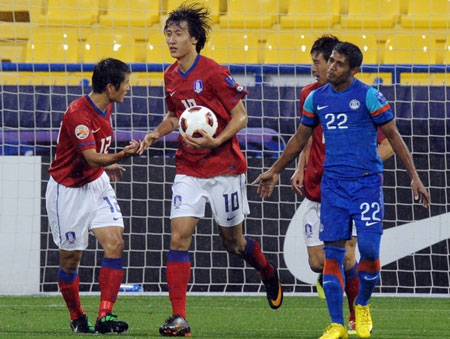 Giành được 4 điểm/2 trận khi nhọc nhằn thắng Bahrain 2-1 và hòa Australia 1-1, Hàn Quốc tràn đầy tự tin khi chỉ phải đối đầu một Ấn Độ yếu nhất bảng, lại chắc chắn bị loại. Và đó là lý do “Sư tử phương Đông” dễ dàng chiếm thế chủ động và ép sân toàn diện sau 90 phút.