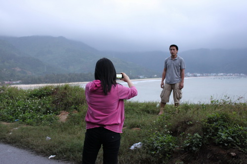 Trong lúc chờ kẹt xe được giải quyết, nhiều hành khách tranh thủ chụp hình.