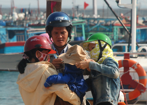Bà Huỳnh Thị Ba không muốn rời cháu ngoại Trần Chí Dũng (3 tuổi) trước khi bé theo bố mẹ rời bến cảng Lý Sơn (Quảng Ngãi) vào Sài Gòn.