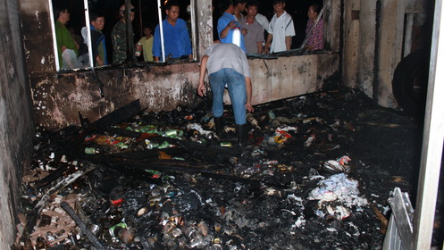 Toàn bộ khu dịch vụ hậu cần nghề cá rộng khoảng gần 100m2, chứa bia, nước ngọt, thực phẩm… đã bị thiêu rụi.