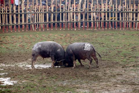 Trâu số 12 và số 26 trong lượt chọi đầu tiên. Ảnh: Xuân Ngọc