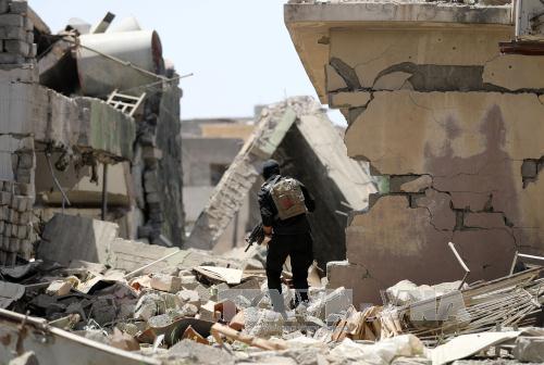 Lực lượng Iraq trong chiến dịch truy quét IS tại khu vực phía tây Mosul ngày 28/5. Ảnh: AFP/TTXVN