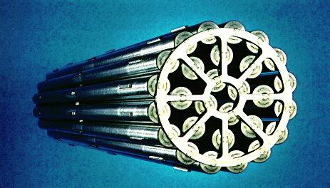 Bước kế những viên nhỏ hình trụ này được xếp thành từng thanh dài, và những thanh dài này được bó với nhau thành từng BÓ.Chúng ta tạm gọi là THANH NHIÊN LIỆU. Những thanh nhiên liệu này được nhúng vào trong nước đựng trong những nồi áp lực . Tác dụng của nước dùng để làm nguội. Để lò phản ứng hoạt động được những thanh nhiên liệu nói trên phải ở trạng thái SIÊU ĐẠT một phần nào.