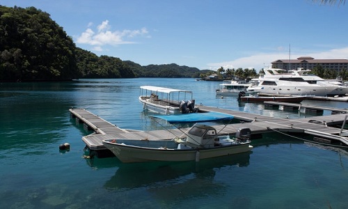 Tàu vắng khách neo đậu trên bến cảng ở Palau. Ảnh: Guardian.