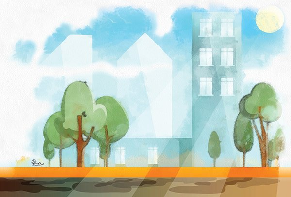 Con sông nhỏ lặng lẽ chảy qua thành phố náo nhiệt, nơi nhà cửa mọc lên ngày một nhiều, cư dân ngày một đông, xe cộ ngày càng tấp nập. Sông chứng kiến sự đổi thay của phố mỗi ngày.