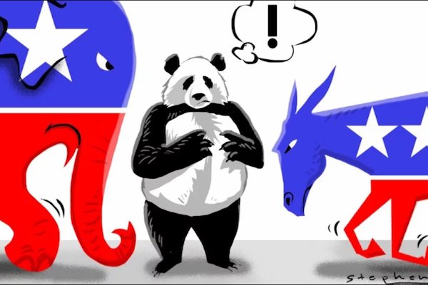 Trung Quốc là một trong những số ít các lĩnh vực chính sách mà cả hai đảng Dân chủ và Cộng hòa tìm được tiếng nói chung. Phe Dân chủ nói chung cho rằng Mỹ phải hành động cứng rắn hơn để chống lại sức mạnh trỗi dậy của Trung Quốc trên nhiều mặt trận từ quân sự, thương mại cho đến tình báo, ngoại giao.