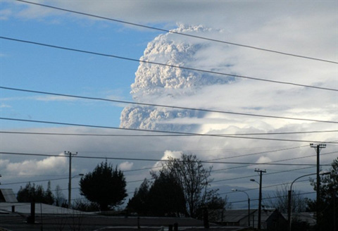 Những cột khói lớn bốc lên từ núi lửa Puyehue, cách thủ đô Santiago 800 km về phía nam, hôm qua. Trước đó, hơn 10 trận động đất được ghi nhận tại khu vực này.