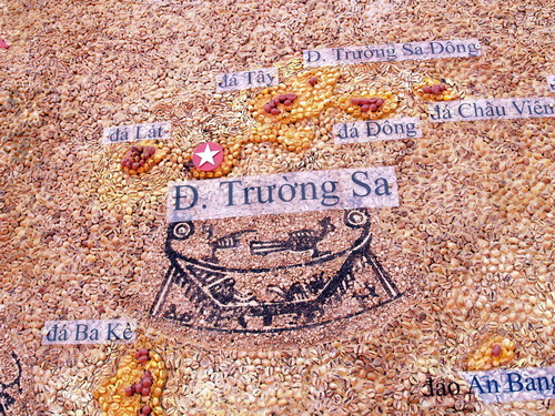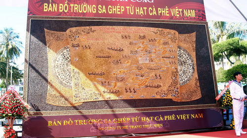Sáng 8-6, bản đồ hành chính huyện Trường Sa ghép bằng hạt cà phê Việt Nam đã được trưng bày tại quảng trường 2-4, Nha Trang (Khánh Hòa) trong khuôn khổ Festival Biển 2011