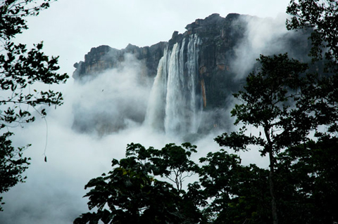 Thác Thiên thần trong vườn quốc gia Canaima, Venezuela. Đổ xuống từ độ cao 985 m, đây là thác nước cao nhất thế giới. Phần lớn nước của thác bốc hơi hoặc biến thành sương mù trước khi chạm mặt đất.