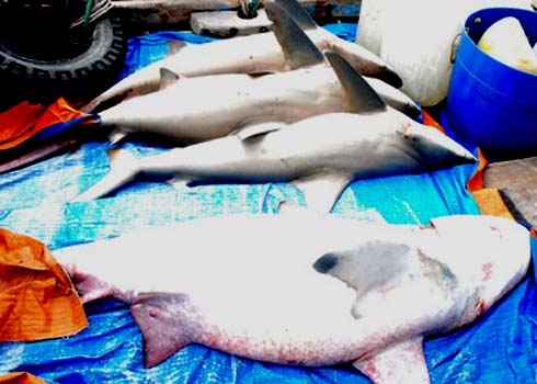 Tuần qua, ngư dân ở thôn Bãi Làng, xã Tân Hiệp (TP Hội An, Quảng Nam) liên tục đánh bắt được cá mập trên vùng biển Cù Lao Chàm, cách bờ khoảng 3-4 hải lý.