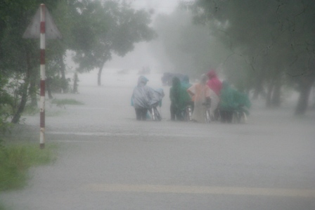 Một số vùng trũng tại huyện Quảng Điền như Quảng An, Quảng Thành, Quảng Thọ đã ngập từ 0,3-1m. Ông Hồ Quang Minh, Chủ tịch UBND huyện Quảng Điền cho biết đã có khoảng 1/3 hộ dân thuộc các xã bị ngập nước đã bị nước lũ ngập nhà.