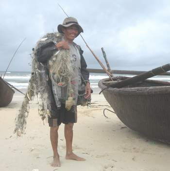 Anh Huỳnh Văn Hải gỡ lưới về nhà.