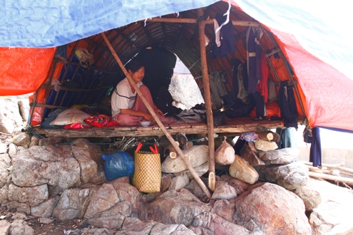 Ngư dân dựng lán trại ngay trên các bờ đá trước càng Chân Mây để thả lưới đánh bắt suốt ngày đêm. Ảnh: Nguyễn Đông.