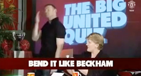 Wayne Rooney sắm vai chủ trò. Anh nhận mật mã từ người dẫn chương trình rồi diễn tả lại bằng hành động cho các đồng đội Ryan Giggs và Jonny Evans đang ngồi phía dưới.