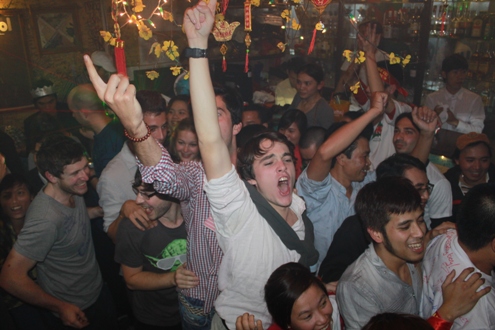 Đồng hồ điểm 24h, khách nước ngoài tại quán DMZ trên đường Lê Lợi (TP Huế) òa lên hạnh phúc. Ảnh: Nguyễn Đông.