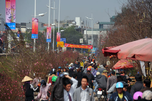 Sáng 17/1, sau ngày lễ ông Công ông Táo, các chợ hoa Hàng Lược, Quảng Bá, Lạc Long Quân, Hoàng Hoa Thám... ở thủ đô bắt đầu đông người đổ về dạo chơi xem và mua hoa về trưng dịp Tết.