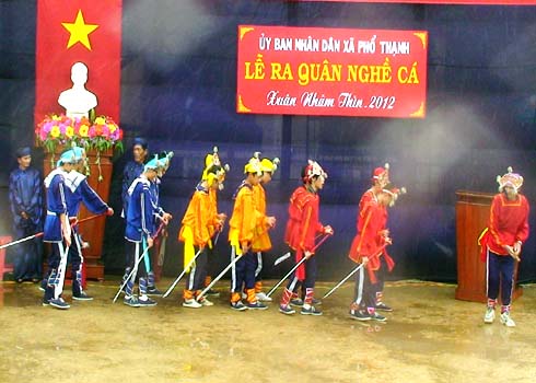 Hòa trong tiếng trống giục rộn ràng đầu xuân, các thành viên đội bả trạo xã Phổ Thạnh diễn xướng nghi thức tế lễ nghinh cá Ông, tạ ơn thần Nam Hải. Với ngư dân Sa Huỳnh, lễ ra quân đánh bắt thủy sản đầu năm hàng trăm năm nay đã trở thành nét văn hóa truyền thống đậm chất văn hóa biển.