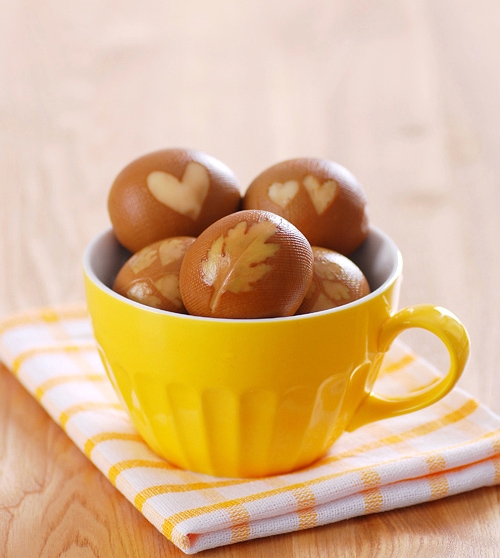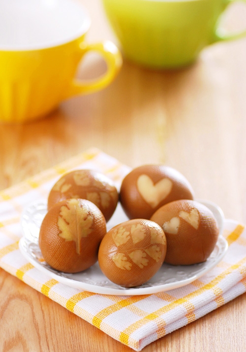 Khi ăn, các bạn chỉ cần bỏ lớp vải cùng lá rau thơm ra là bạn đã có những quả trứng tuyệt đẹp rồi nè!