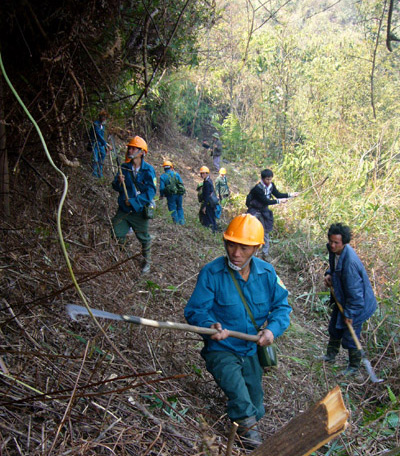Làm đường băng cản lửa. Ảnh: Báo Lào Cai.