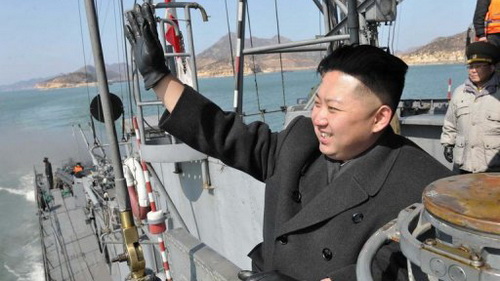 Nhà lãnh đạo Kim Jong Un trên một tàu chiến của CHDCND Triều Tiên - Ảnh: AFP