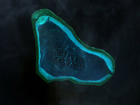 Bãi cạn Scarborough/Hoàng Nham. Ảnh vệ tinh: Google