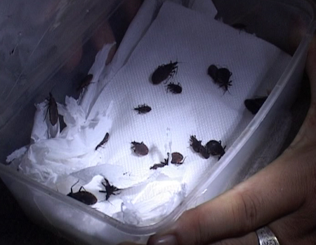 Những mẫu bọ xít hút máu người thu được tại nhà cụ Cả Nhàn. Ảnh: M.H.
