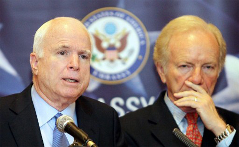 Tuyên bố này được hai thượng nghị sĩ Mỹ là John McCain và Joseph Lieberman đưa ra khi tới thăm Malaysia, trước khi đến dự Hội nghị thượng đỉnh An ninh châu Á, trong chuyến công cán tại châu Á - Thái Bình dương.
