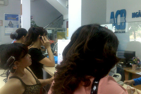 15h, tại phòng giao dịch ngân hàng Á Châu trên phố Trần Thái Tông, Cầu Giấy có khá nhiều khách đang làm thủ tục. Tất cả các quầy đều đông khách. Một vị mang đến gửi một bọc tiền kỳ hạn dài vì lo lắng lãi suất sẽ còn hạ. Chị này cho biết vừa bán đất, định mua mảnh khác nhưng chưa đủ vốn và cũng đang trông chờ thị trường ấm lên để bán được hàng. "Thời gian tới, khi kinh tế phục hồi, lãi suất giảm, nhà đất khởi sắc sẽ đem tiền đầu tư chưa muộn", chị nói.