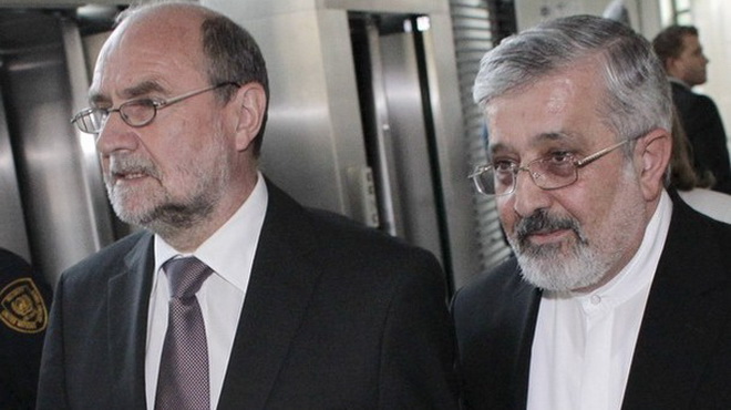 Ông Nackaerts (trái) và ông Soltanieh ở Vienna ngày 8-6 - Ảnh: Reuters