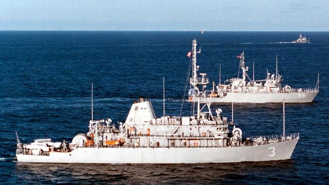 Tàu dò mìn USS Sentry (trước) của Mỹ đã có mặt tại vùng Vịnh - Ảnh: navsource.org